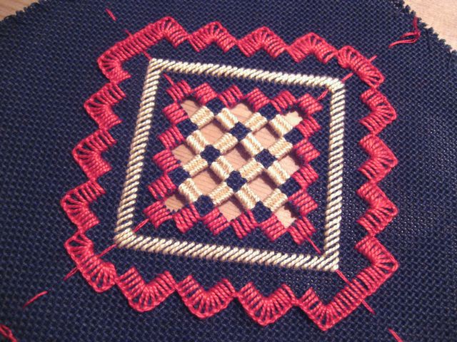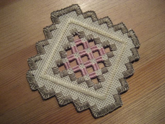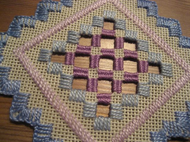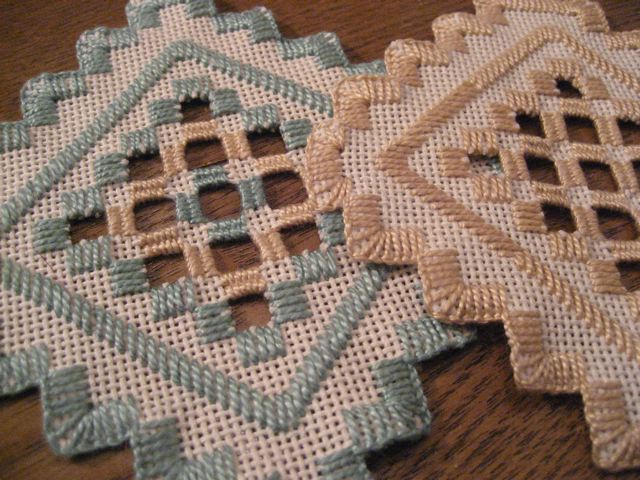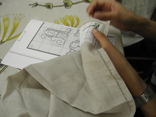 織り糸を抜いてかがると透かし模様ができる美しい刺繍です。