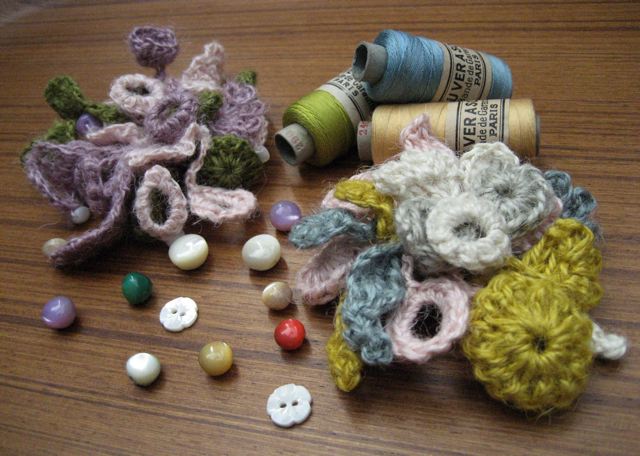 初歩的な4種類のかぎ針編みを繋いで作ってゆきます。