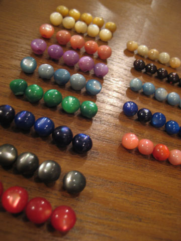 コロンとした厚みのある貝ボタン、カラーも豊富。