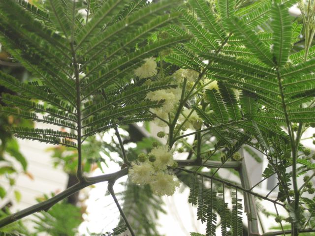 今年、初めて裏庭のミモザ(アカシア)の樹に花が咲きました。