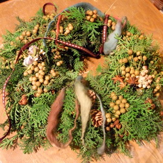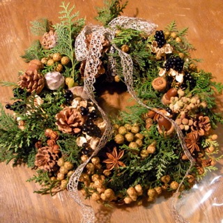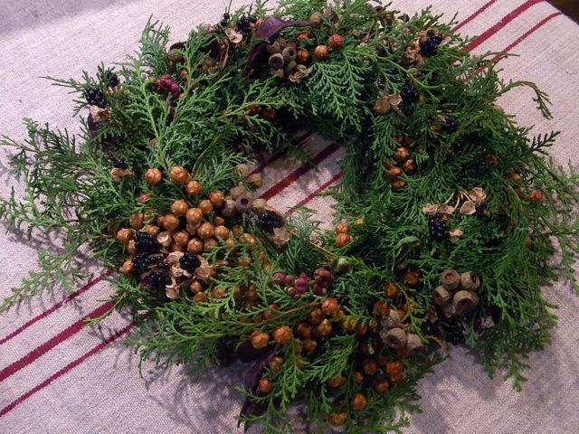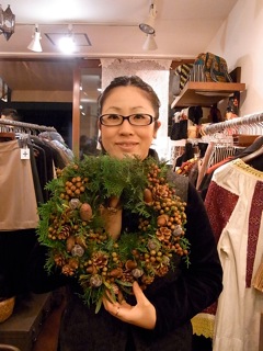 今年は、かわいい実のついたヒノキのリースです!!