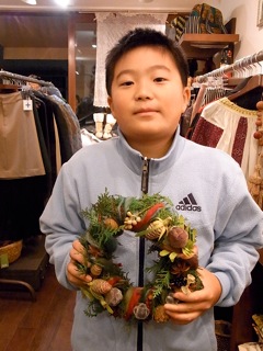 えらくリース作りを楽しんでました。
