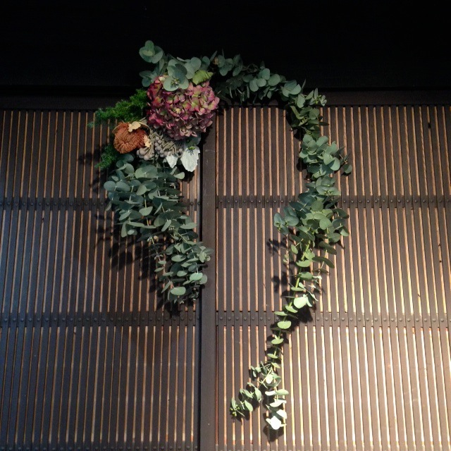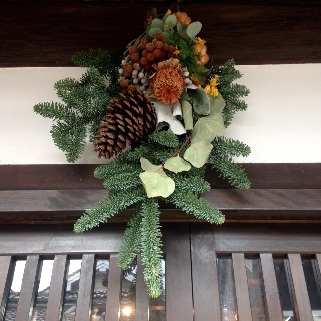 玄関先には、以前買ってあったモミの木の枝とでスワッグを。