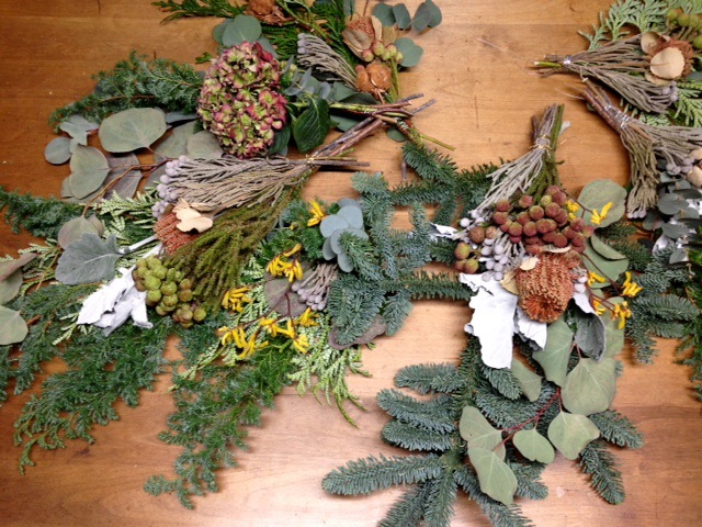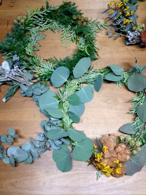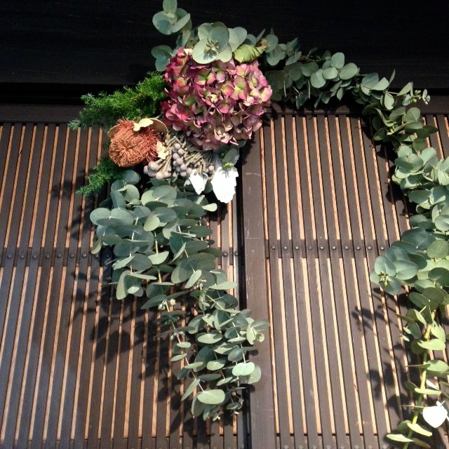 ユーカリを繋ぎ合わせて輪っかを作るという贅沢仕様。
