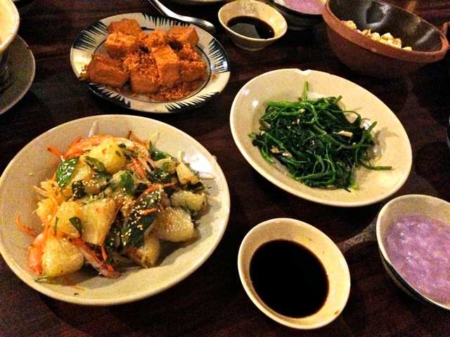 向こうに見えるは、揚げ出し豆腐にフライドレモングラスののった