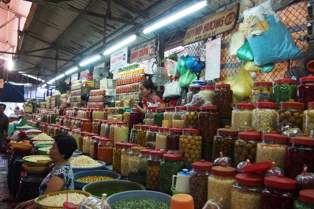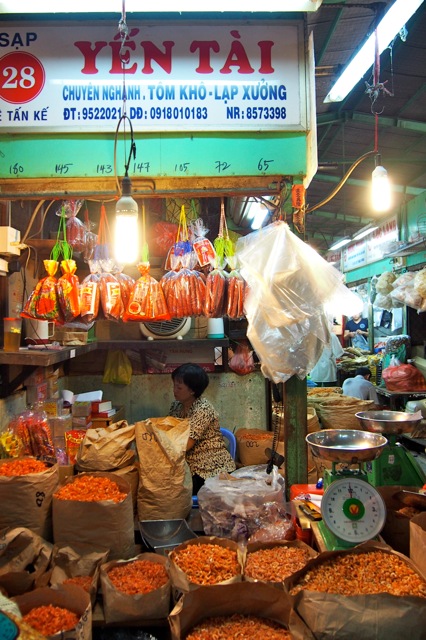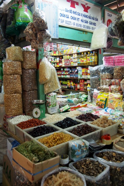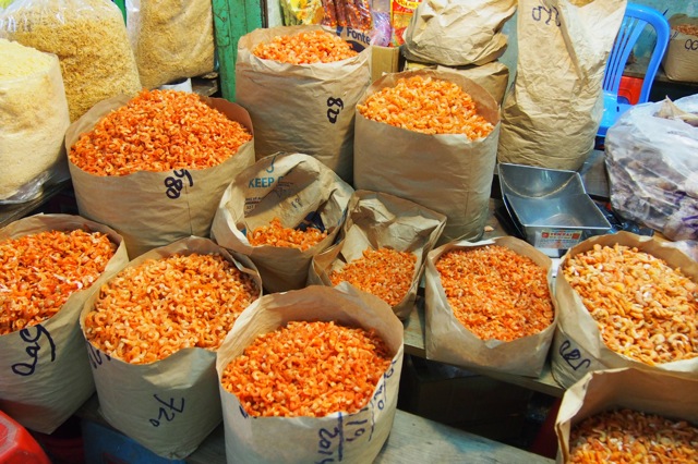 海岸沿いの町のファンティエットの市場。海鮮乾物のお店が多い。