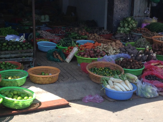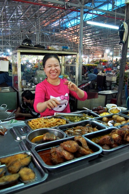 週末のリゾート、バンガロー宿泊の昼食が市場の地べた飯ですからね〜。