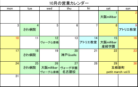 黄色が営業日です。