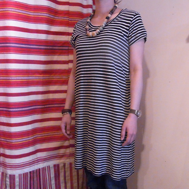 おとなしくめのコーディネイト、ボーダー on ドットに、