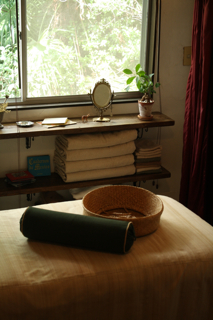 爽やかな裏庭でアロママッサージ。