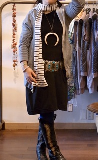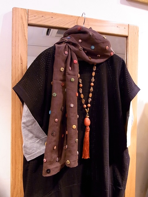 私も、ちょこっと今日のコーディネイトに巻いてみました。