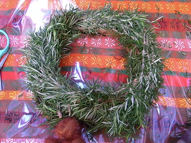 まず、土台としてローズマリーをワイヤーで止めてゆきます。