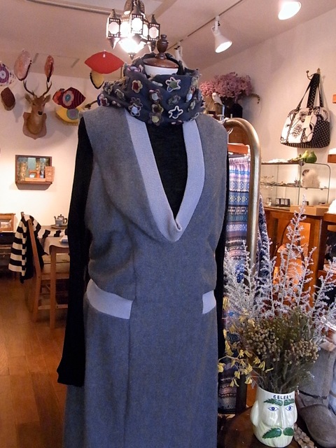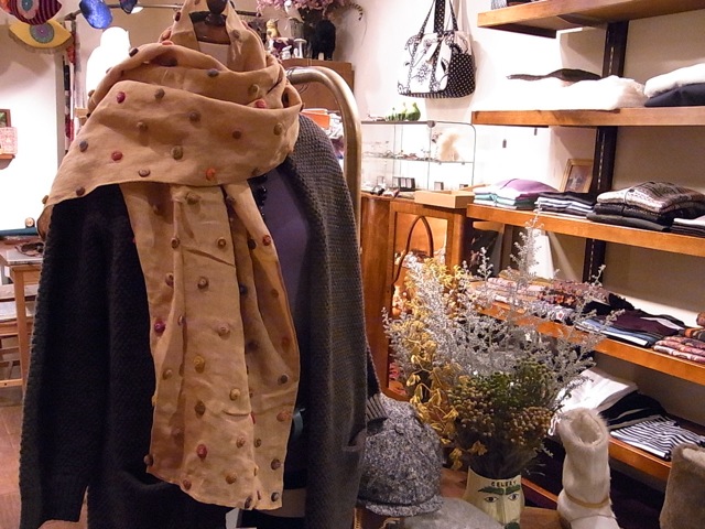 パシュミナのストールなんかと重ねて巻いてみてください。