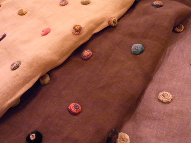 リネン地にベルベットとウールの小さなビスケット。