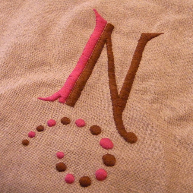 思い立って刺し始めた私のイニシャル『N』が出来上がりました。