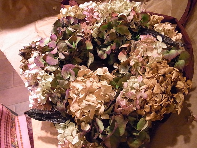 ドライと生のあじさいを使った