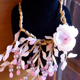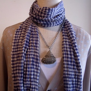 胸元には、パリで仕入れてきたパーツをネックレスに。