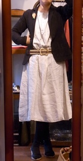 しっかりした麻の素材でいい感じ、ワンピースとして着てみました。