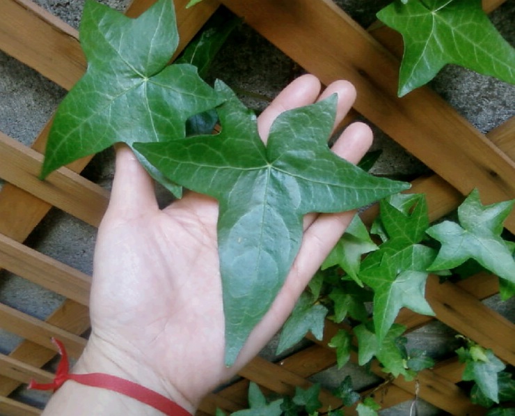 柵に這わせているアイビーが、こんな手のひらサイズの