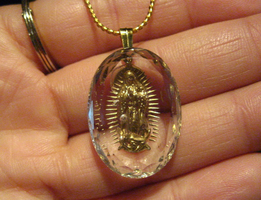 ガラスにマリア様が彫り込まれたアクセサリーを2つご紹介致します。