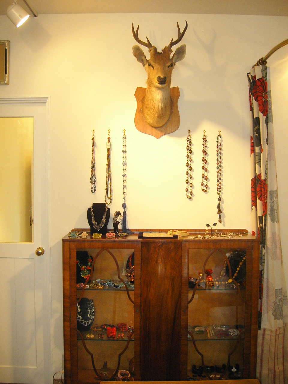 その横には、我が店のアイドル鹿の剥製ちゃんとアクセサリーケース。