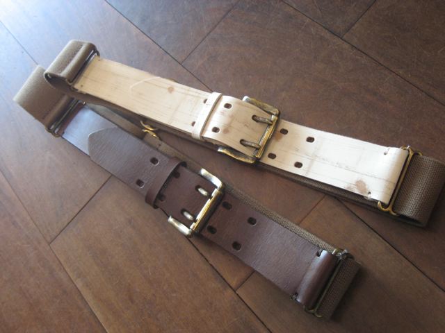 この2種類のベルトは、金具をすべて別注で真鍮で作ってもらいました。