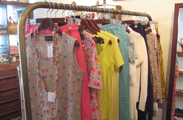 こちらは、カラフルな麻のパンツをメインにハンギング。