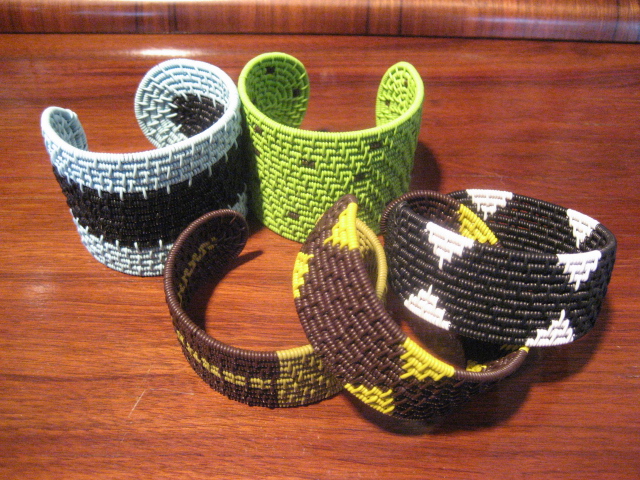 こちらは、電話線で作られたブレスレット、色合わせが妙に可愛い。