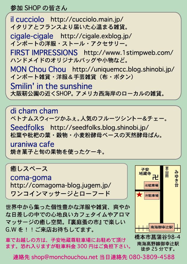 セレクトショップ『MON Chou Chou』オーナー、 刺繍教室『Atelier hands & heart』主宰。 4月より奈良県五條新町でのショップオープン!!