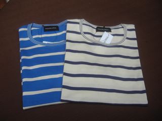 きれいな色のボーダーが各種揃います。Tシャツ、ノースリーブ、カーディガン。