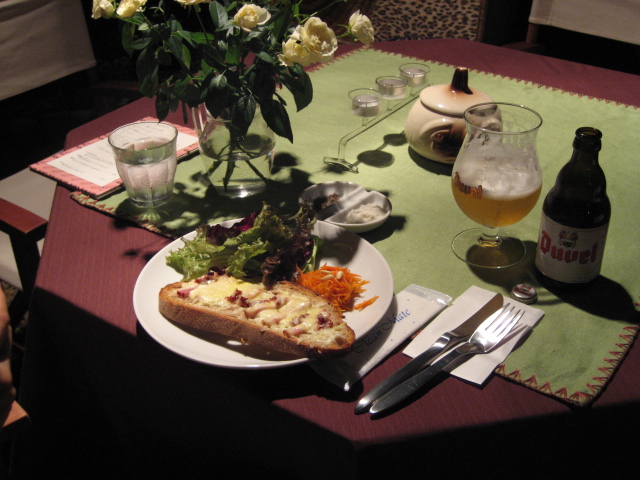 ワインのお供のレバーパテにベルギービール。